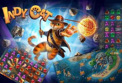 Developed by PlayFlock Available on Facebook, iPhone, iPad and Android Indy Cat is a game belonging to the popular match-3 genre. Help Indy Cat find the magical Ball of Fate! Complete levels, make combinations of gems and solve entertaining puzzles.